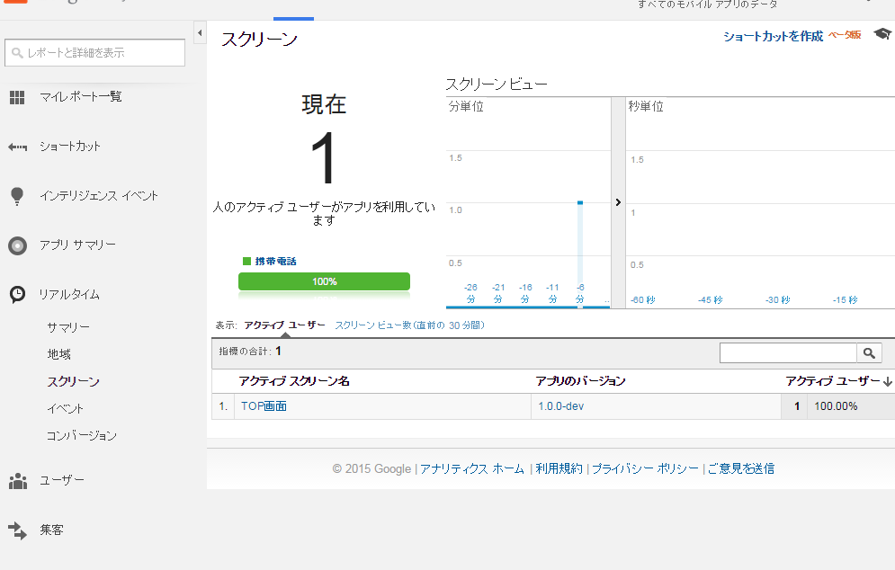 レポートタブのアプリサマリーの項目ににデータが追加されていきますが、